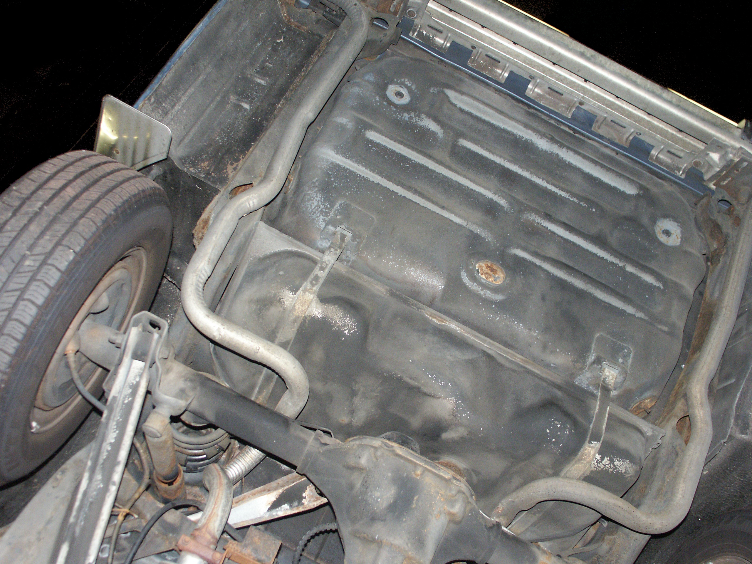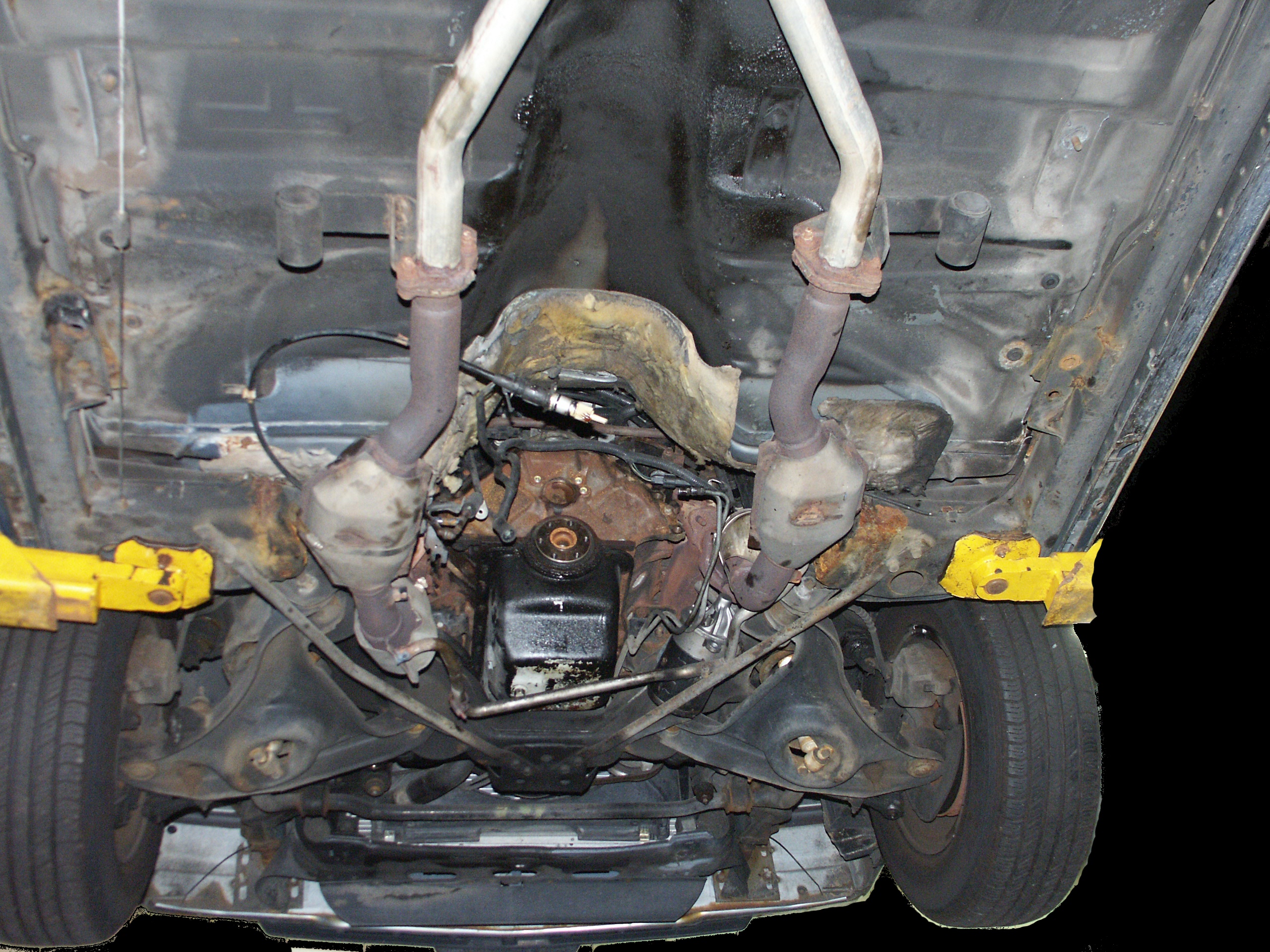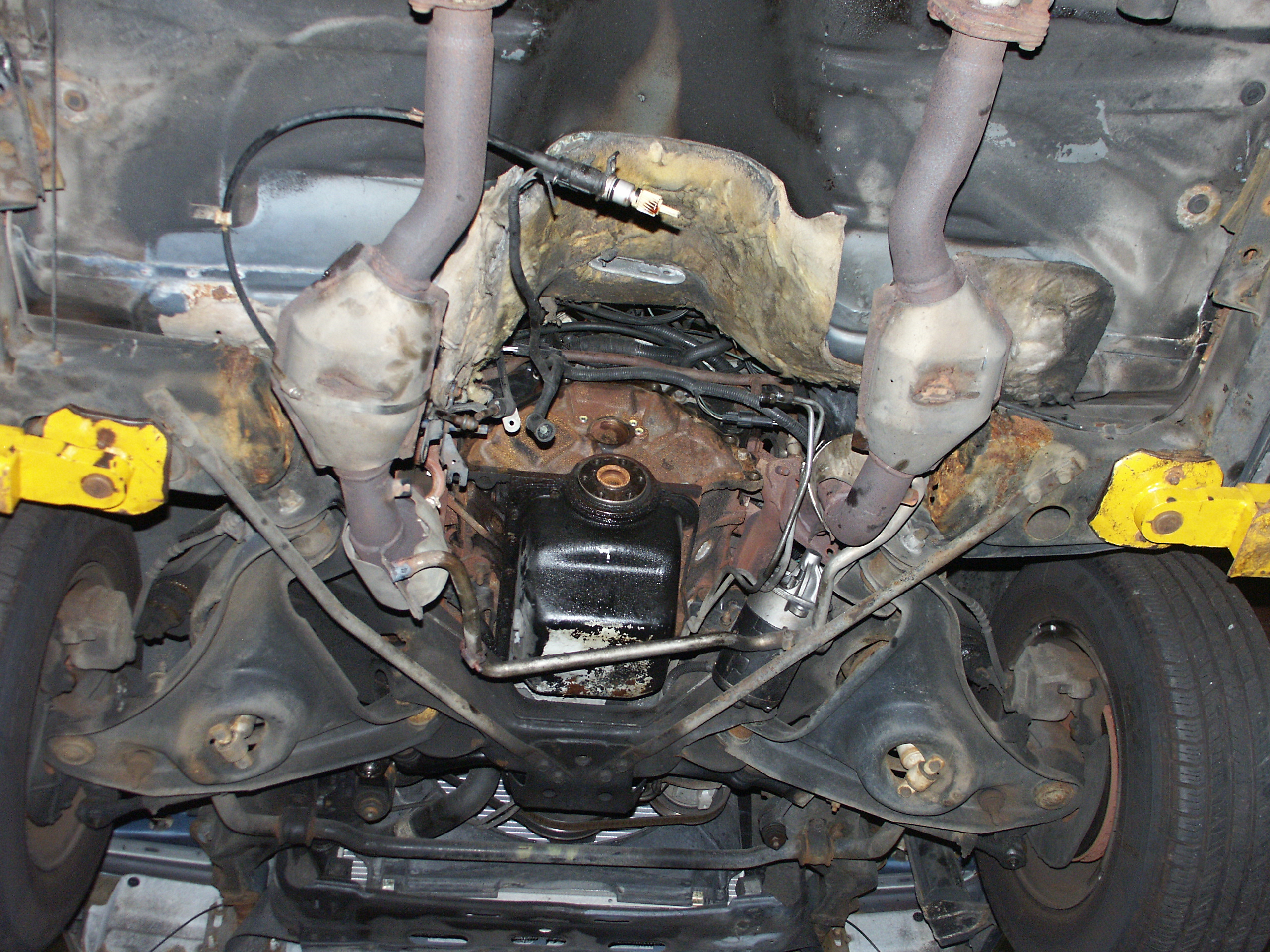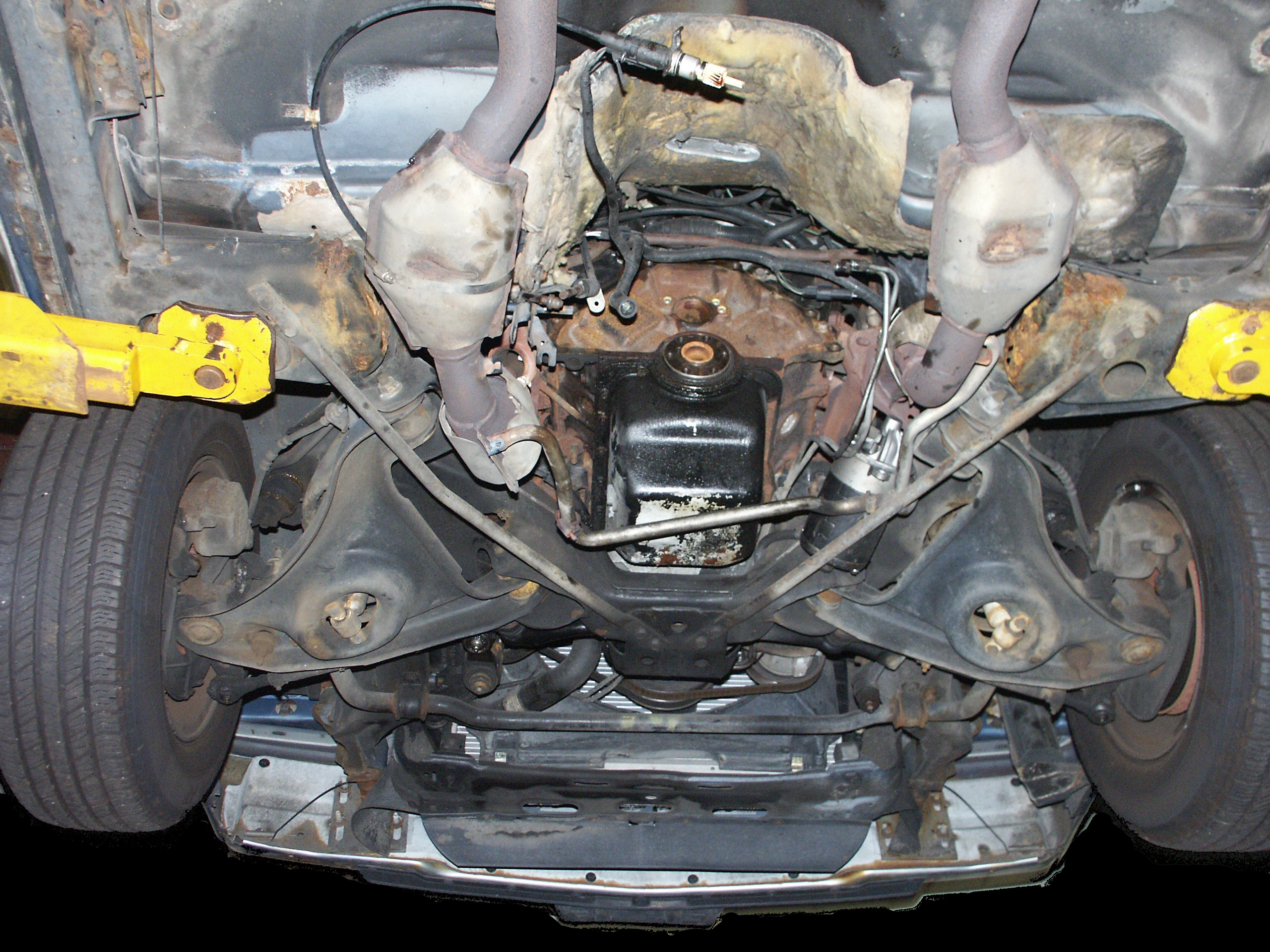 of the emergency brake cabling and the muffler mounts. Also notice no