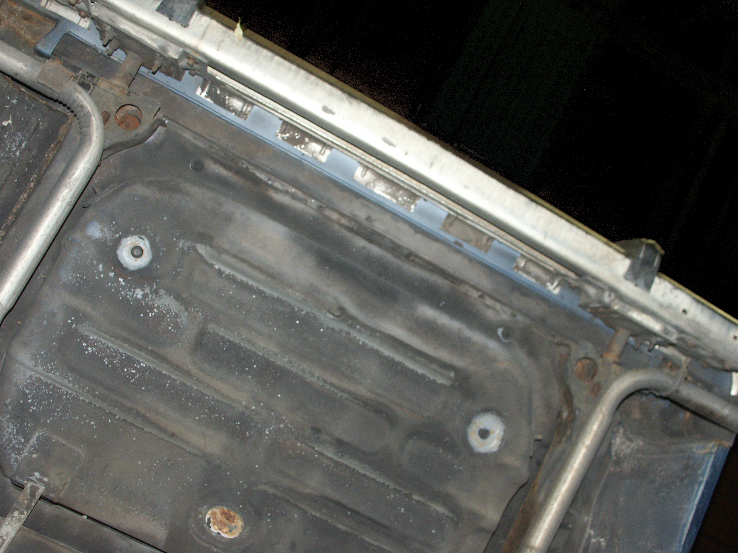 A closeup of the two front seat mounting brackets