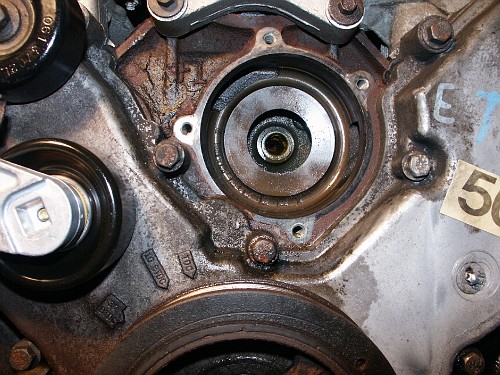 area where the waterpump will mount due to excessive corrosion making