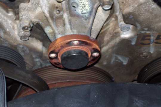 Note that corrosion can build up around where the water pump hub