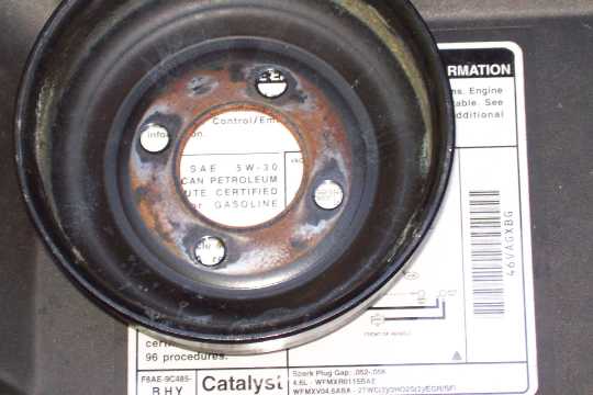 If you have a 1999 or later crown vic, the pulley on the alternator will be larger than the 1998 pulley pictured below to reduce belt slippage during hard acceleration. But as a result of the pulley size change, 1999 crown vics do not output as much current (amps) at low idle speeds as 1998 crown vics do.