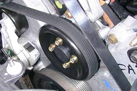 Loosen, but do not remove the 4 bolts that hold the water pump pulley