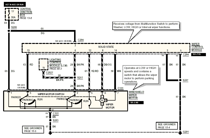 the wipers. If black/pink input wire to the lcm from the wiper control module